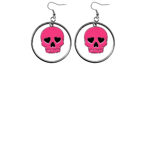 It's a MUST HAVE product, make it a point order now to avoid disappointment. Receive the best cheapest price on the web we have searched. Click Here and have the Pink Skull with Heart Eyes in Silver Colored Hoop Earrings from Sourpuss Clothing at this moment